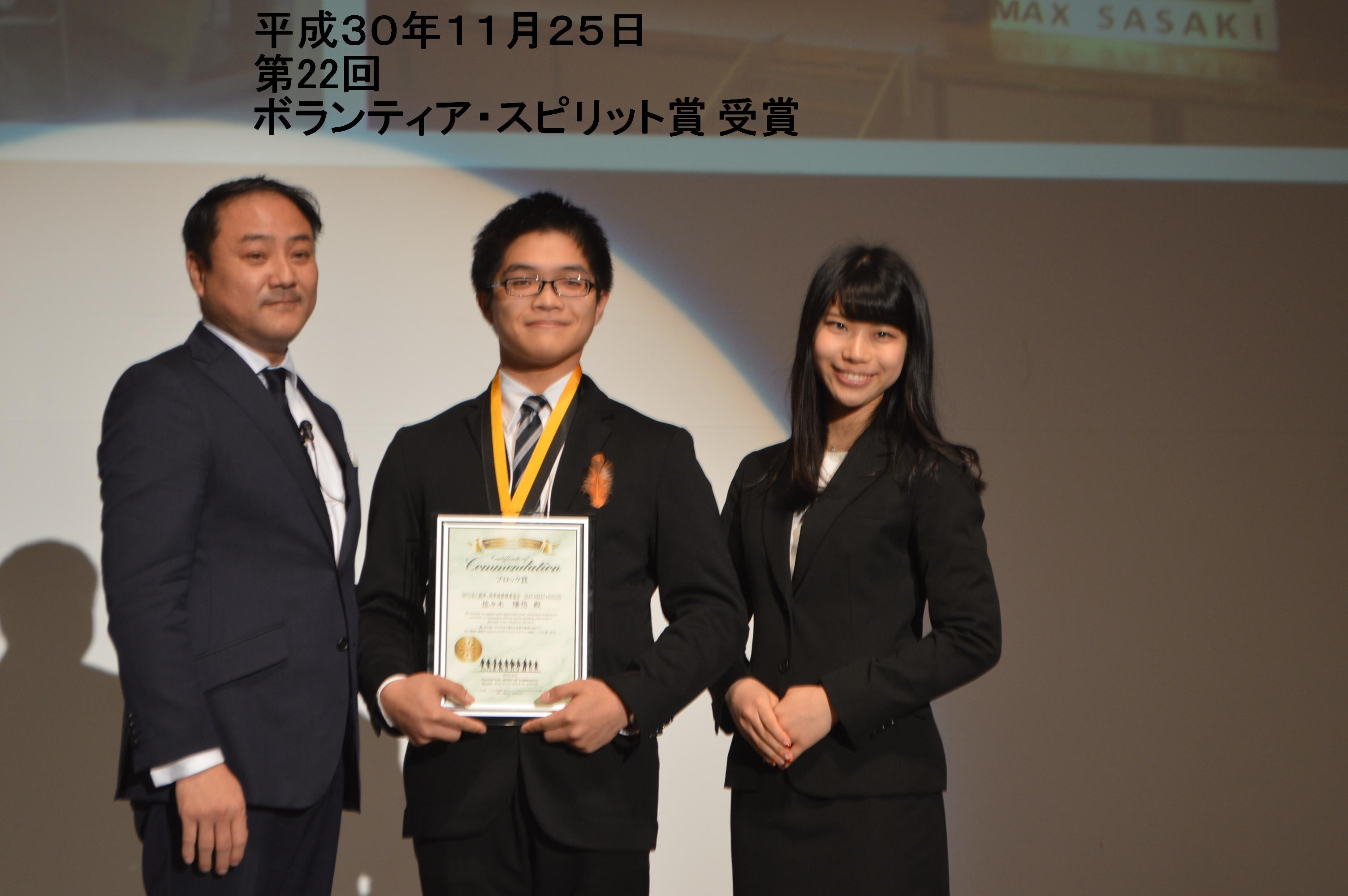 指定的非營利活動公司 數學・科學技術推進協會 MathMathGood主席 佐々木 陽悠